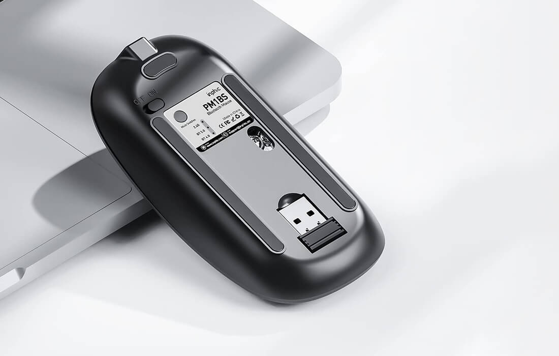 ניתן לבחור את שיטת החיבור הרצויה באמצעות הכפתור שבבסיס העכבר.